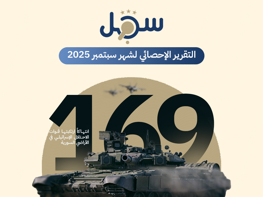 أصدر مركز سجل بتاريخ 24 أكتوبر 2025 تقريره الإحصائي الشهري الذي يتناول شهر سبتمبر 2025. ويستعرض التقرير، الذي يستند على الرصد الميداني والمصادر المفتوحة، أبرز ما وقع من عملياتٍ وانتهاكاتٍ إسرائيلية في سوريا خلال الشهر المذكور.