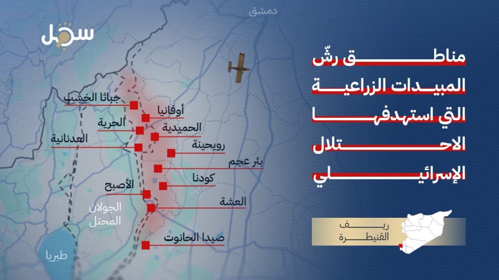 رشّ الاحتلال الإسرائيلي للمبيدات على الأراضي الزراعية في جنوب سوريا خيار استراتيجي لتهجير المزارعين من أراضيهم