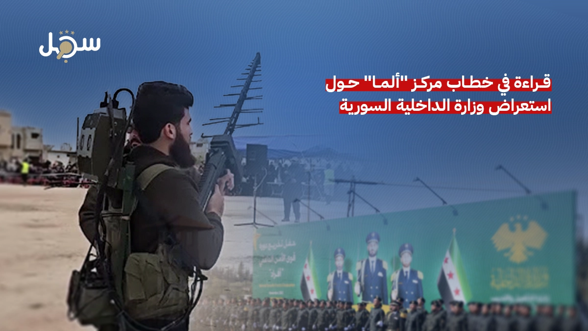 تشكّل ورقة “وزارة الداخلية السورية تستعرض تحديث قوى الأمن الداخلي بمعدات حديثة وتسليح تركي” حلقة جديدة ضمن المسار البحثي الذي يتبعه مركز ألما في مقاربته للملف السوري، وهو مسار يقوم في جوهره على قراءة التحوّلات الأمنية في سورية من زاوية استخبارية تميل إلى استباق التهديدات وتوسيع نطاقها. ويأتي تناول مركز سجل لهذه الورقة في سياق متابعة نقدية لسلسلة من المواد الصادرة عن المركز ذاته خلال الأشهر الماضية، من بينها دراسة “البنية الإرهابية المحتملة لإيران وحزب الله في الجنوب” المنشورة في أكتوبر 2025، وتقرير “ترميم القدرات أم استنزاف الوكلاء؟” في يناير 2026، ثم تقرير “أهمية قاعدة التنف العسكرية” في فبراير 2026، وصولاً إلى ورقة “حرب إيران الثانية – نافذة فرص لسورية” الصادرة في مارس 2026.